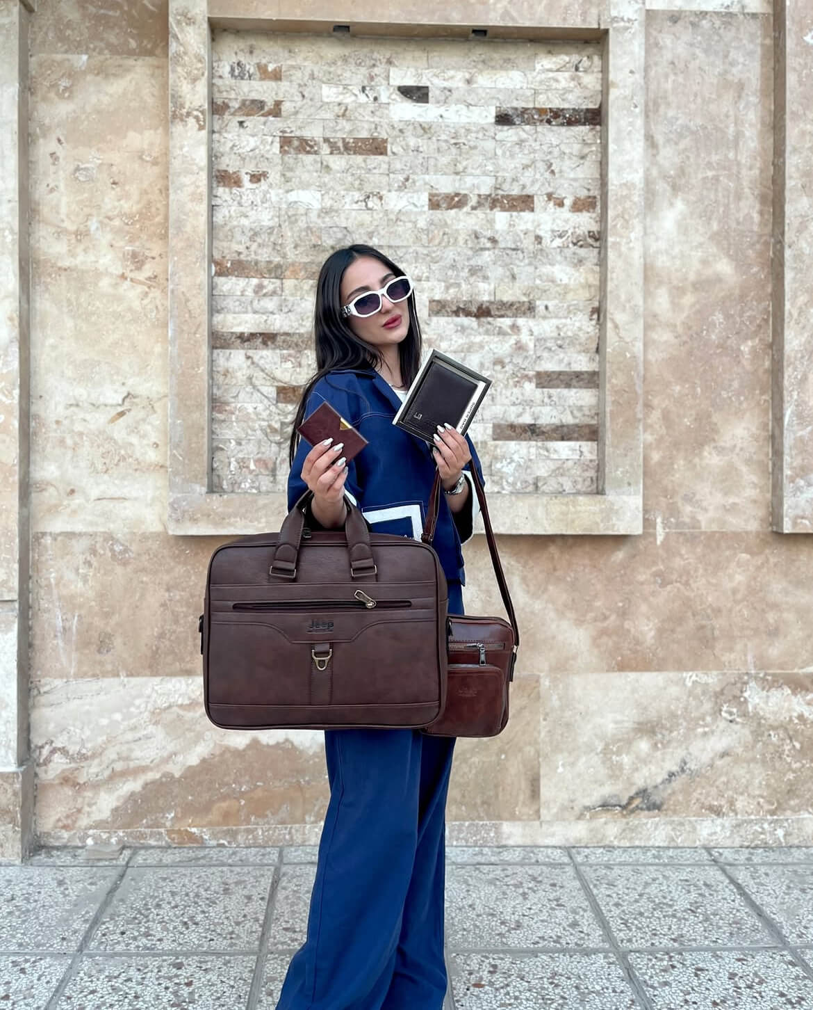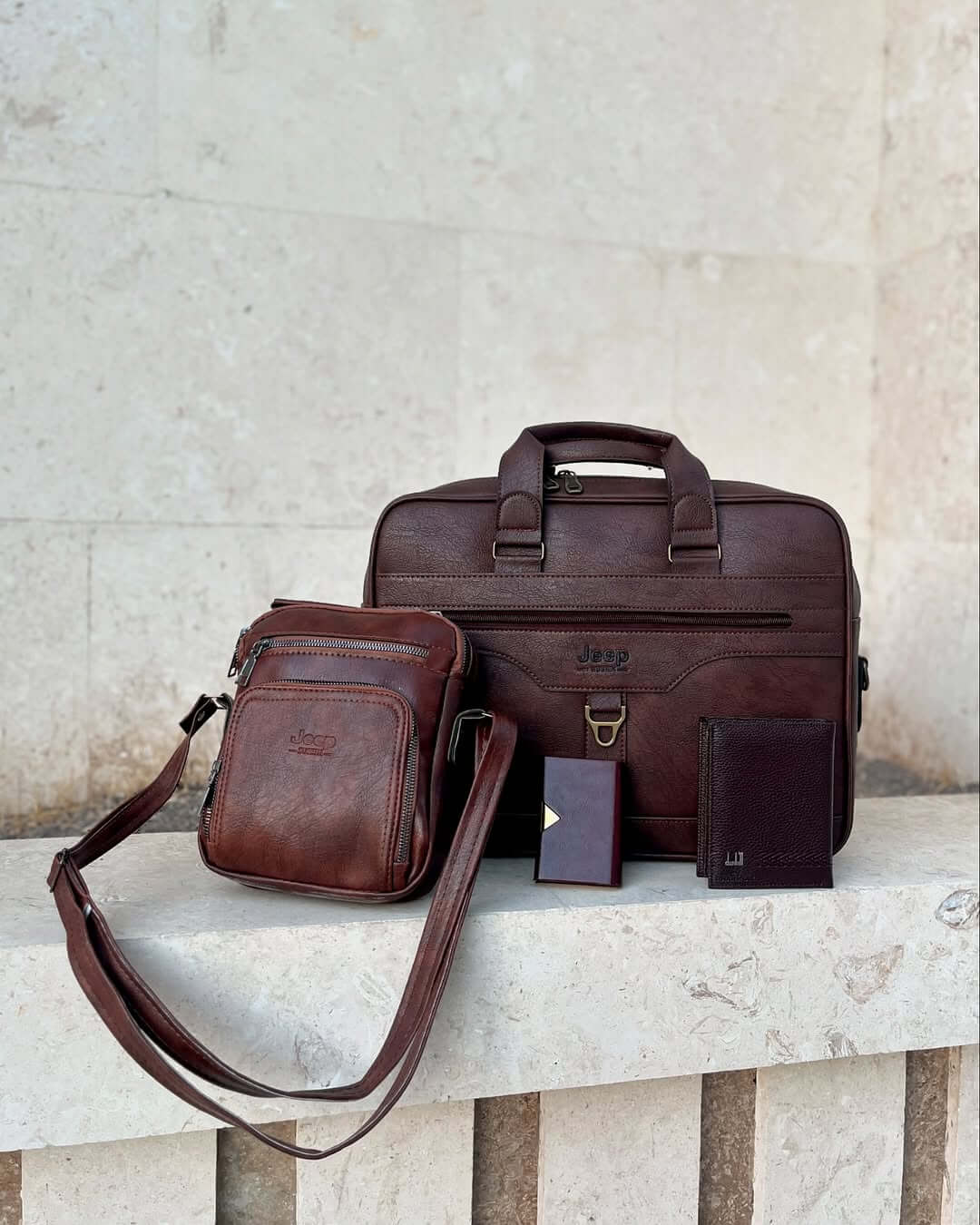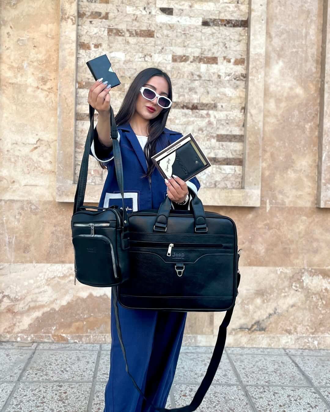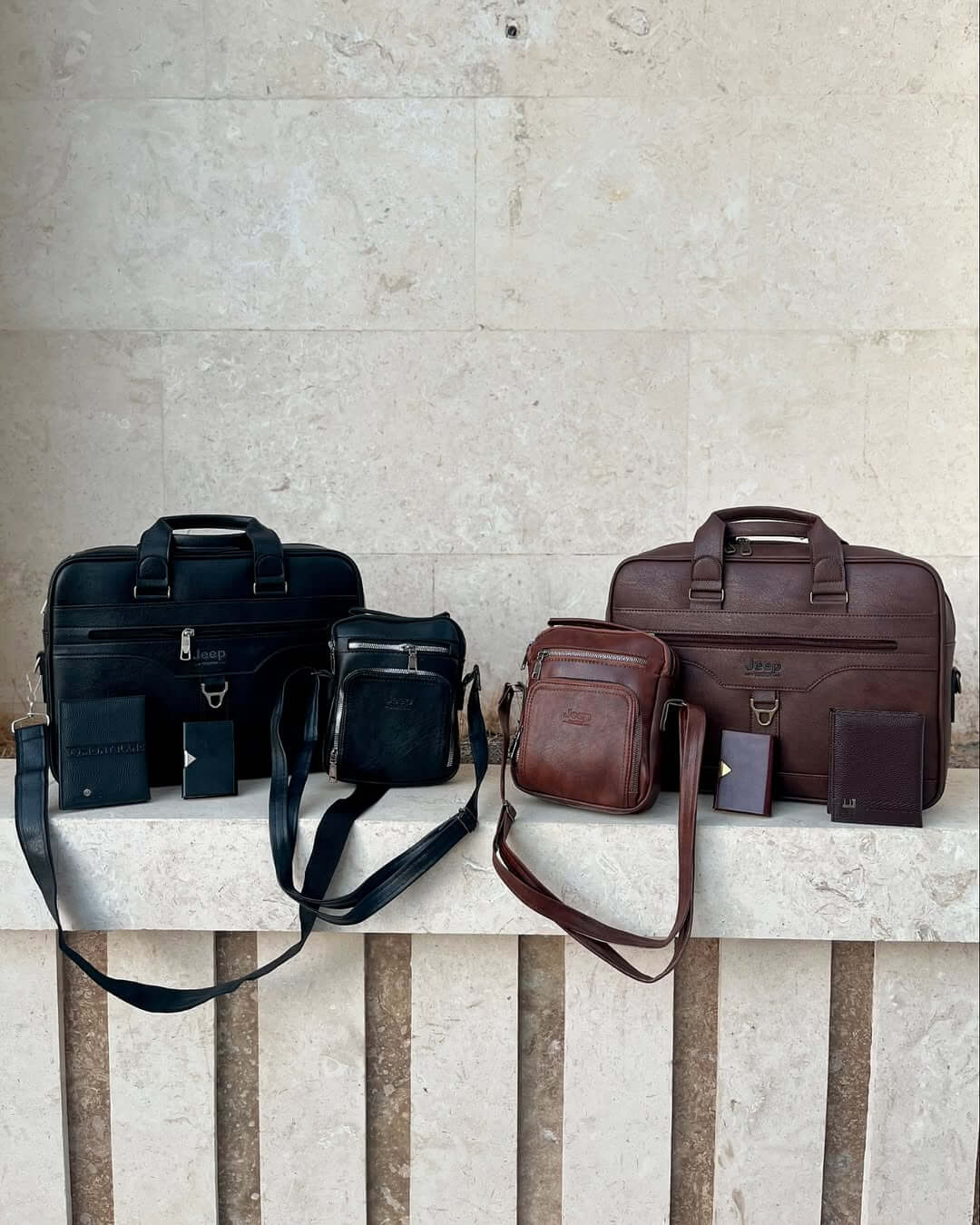 اجزاء این پک شامل کیف اداری، کیف پول، کیف دوشی و جاکارتی می باشد که در بسته بندی خود به بهترین شکل چیدمان شده اند.