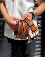 بدون شک یکی از اصلی ترین و مهم ترین اجزای یک استایل رسمی، کمربند چرم طبیعی است.کمربندی که با کفش چرم، کیف کتی چرم و اکسسوری های شما ست باشد جذابیت شما را چند برابر می کند.همچنین شما می توانید برای استایل های روزمره و کژوال خود از کمربند چرم با عرض بیشتر و سگک بزرگتر استفاده کنید .